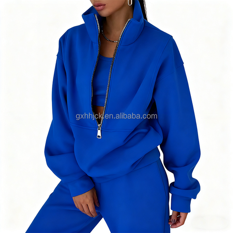 Fleece Half Zip Trainings anzug für Frauen Custom Fashion Style Fitness Sport Hoodie Weiblich 1/2 Reiß verschluss Warm Casual Hoodie