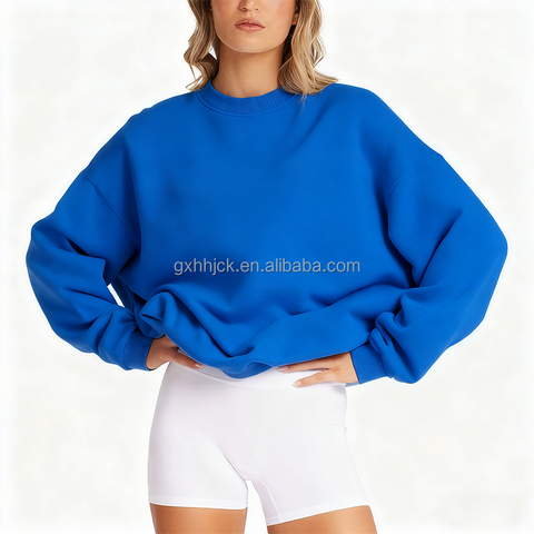 Sudadera con capucha de cuello redondo personalizada con logotipo bordado para mujer sudadera informal de cuello redondo de algodón de gran tamaño