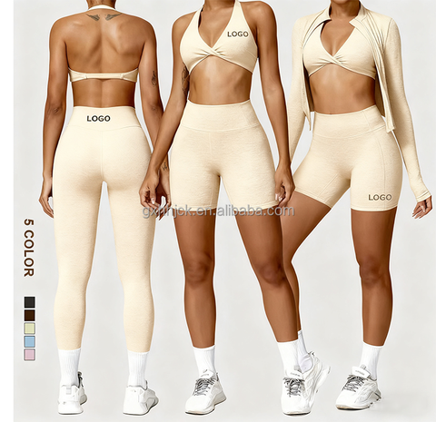 Wholesale Custom Fitness Wear Yoga Sets Gym Workout Clothes Athletic Suits Sports Bra Jacket High Waist Leggings Set for Women
