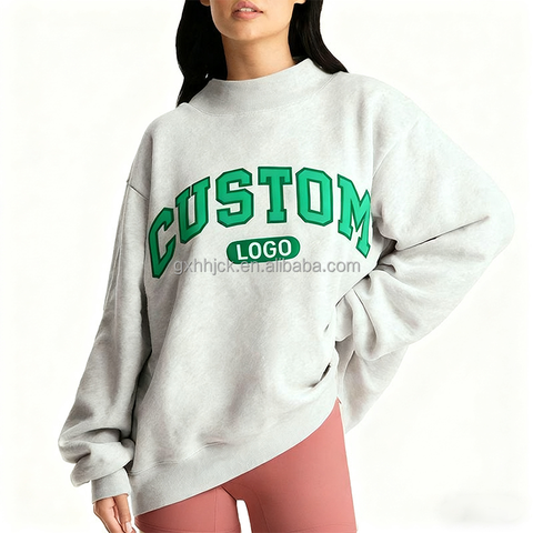 Biểu Tượng Tùy Chỉnh Của Phụ Nữ Mềm Cotton Mock Cổ Thời Trang Phố Thêu Jumper Lông Cừu Quá Khổ Áo Thun Phụ Nữ Mockneck Áo